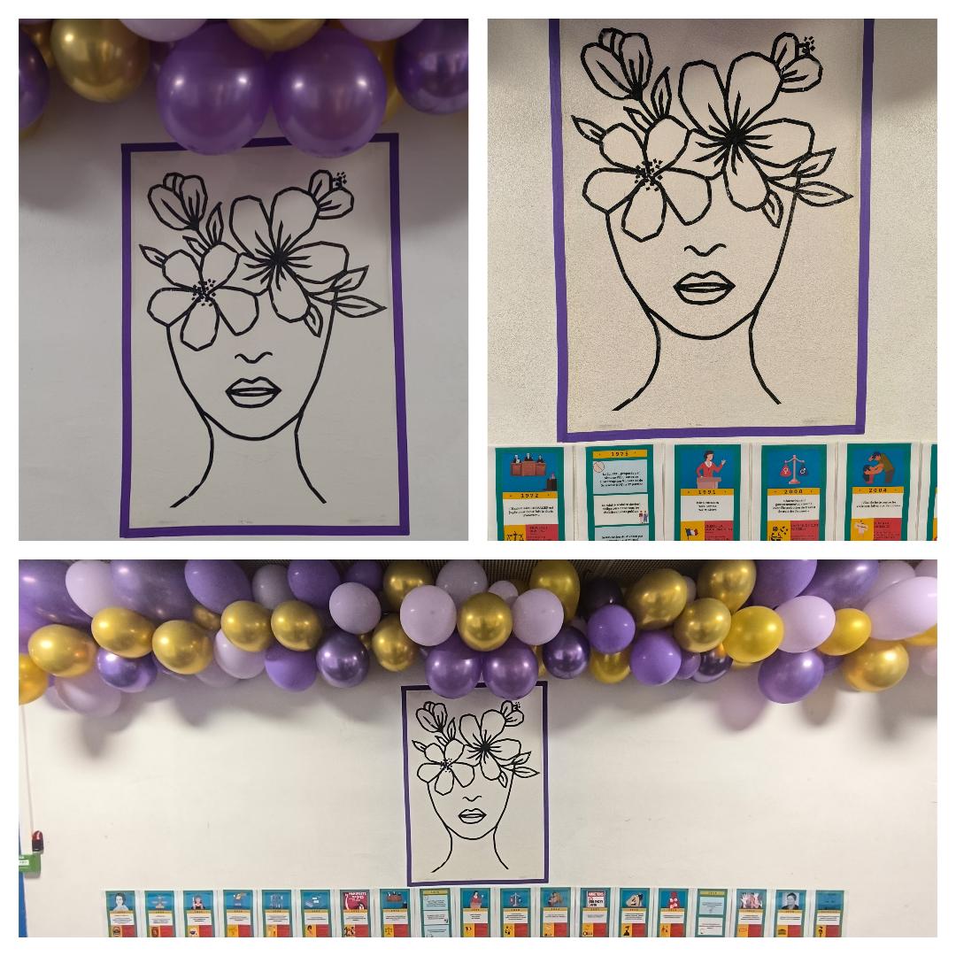 En parallèle au sein du lycée, ces actions ont été menées par notre équipe de CPE et des élèves ambassadeurs et ont crée un mur d’expression à l’effigie de la femme et les salles ont été rebaptisé